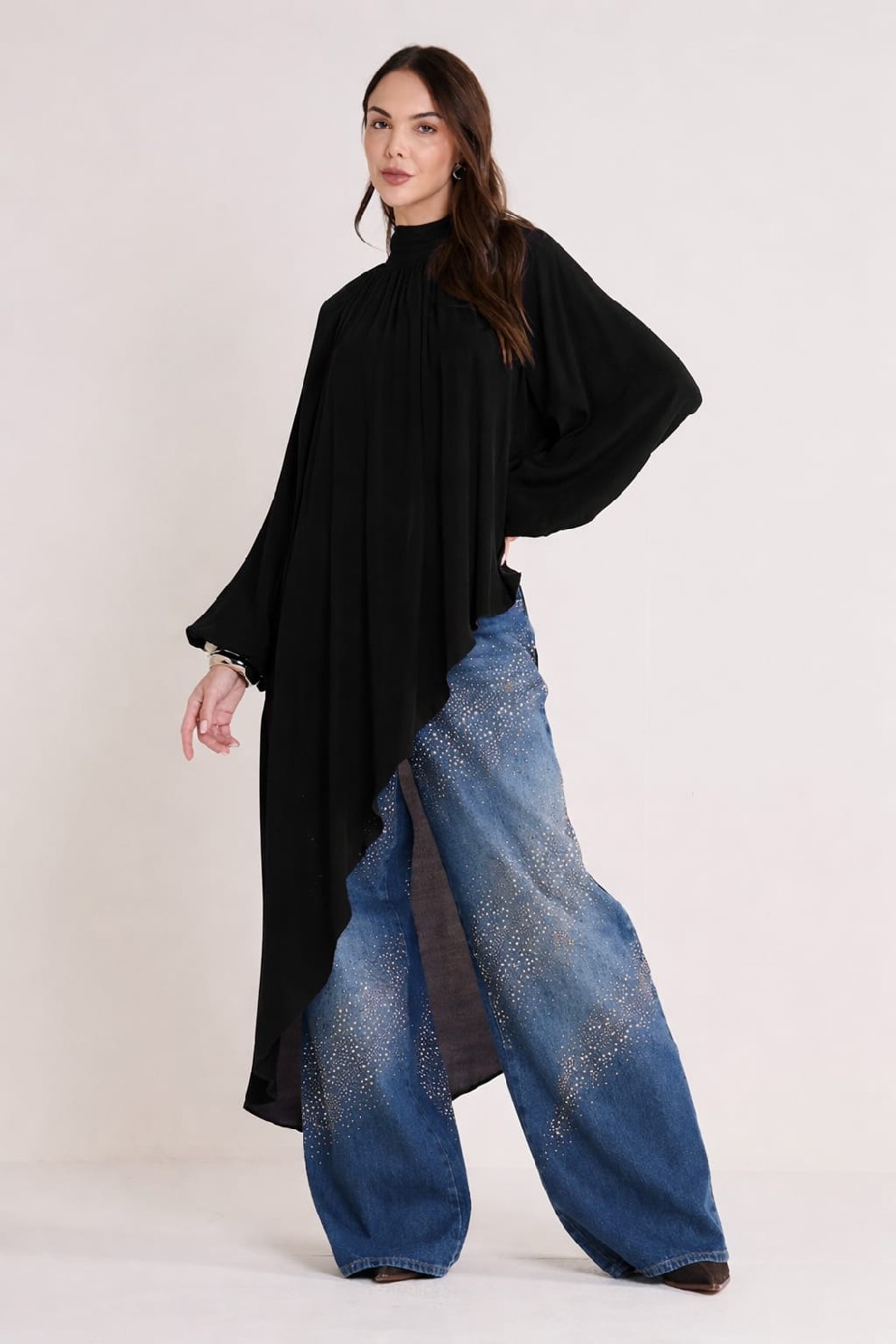 Cor: Bôrdo Tecido: Viscose (100%) Design: Modelagem Ampla e Longa (Túnica), Gola Alta com Franzido, Barra Assimétrica, Manga Longa (Levemente Morcego) Detalhes: Fechamento por amarração na nuca, Caimento Ultra Fluido, Manga com punho elástico Funcionalidade: Toque Sedoso, Fluidez e Leveza, Conforto Extremo, Liberdade Total de Movimento, Peça Statement, Cintura Livre DICAS TEAM FORUM! Esta Blusa Túnica é a tradução da elegância inovadora, com a Modelagem Ampla e Assimétrica que celebra a liberdade e a sofisticação da ROTA 81. O tecido 100% Viscose garante a fluidez e o bem-estar. Para um look marcante, combine-a com jeans de modelagem ampla (como na imagem) e salto, criando um visual despojado e ultra elegante. Use com um cinto largo na cintura para criar um efeito mais ajustado.REF:036.46.07301