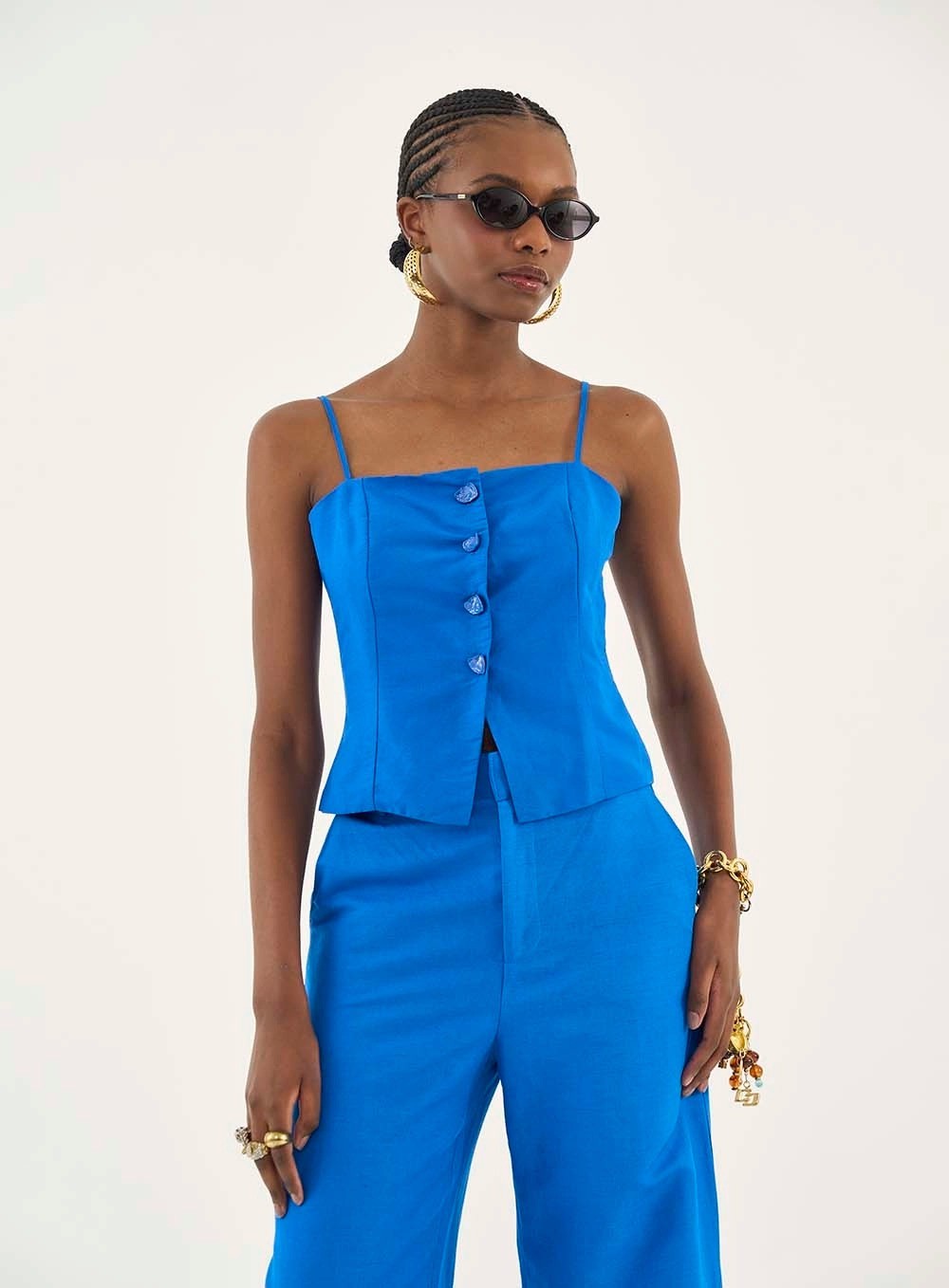 Características:Tecido: Confeccionada em um blend nobre de 64% Viscose e 36% Linho. Esta união proporciona a textura rústica e luxuosa do linho aliada ao toque macio e caimento impecável da viscose, garantindo estrutura e frescor inigualáveis que respiram qualidade.Design: Modelagem reta e levemente acinturada com decote quadrado, valorizando o colo e os ombros com absoluta elegância e uma sensualidade discreta, inspirada na alfaiataria clássica de Milão.Detalhes: O grande diferencial reside no fechamento frontal com botões forrados em design levemente assimétrico, conferindo um toque moderno e artístico. Apresenta alças finas reguláveis para um ajuste perfeito e recor