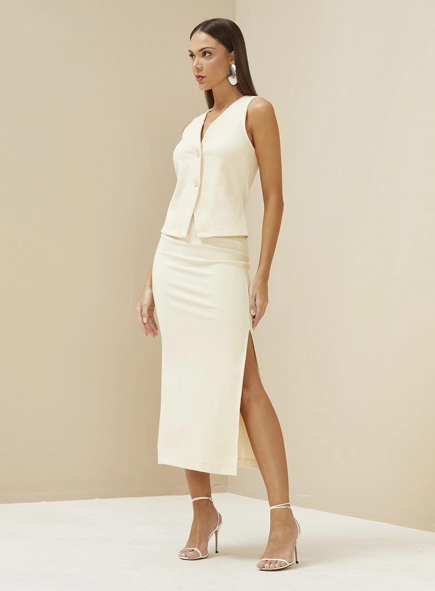 Possui modelagem sem mangas, decote em V e fechamento frontal por botões, proporcionando um visual minimalista e elegante. Ideal para compor looks modernos e versáteis, podendo ser usada tanto em produções casuais quanto em combinações mais formais.REF:036.46.07135