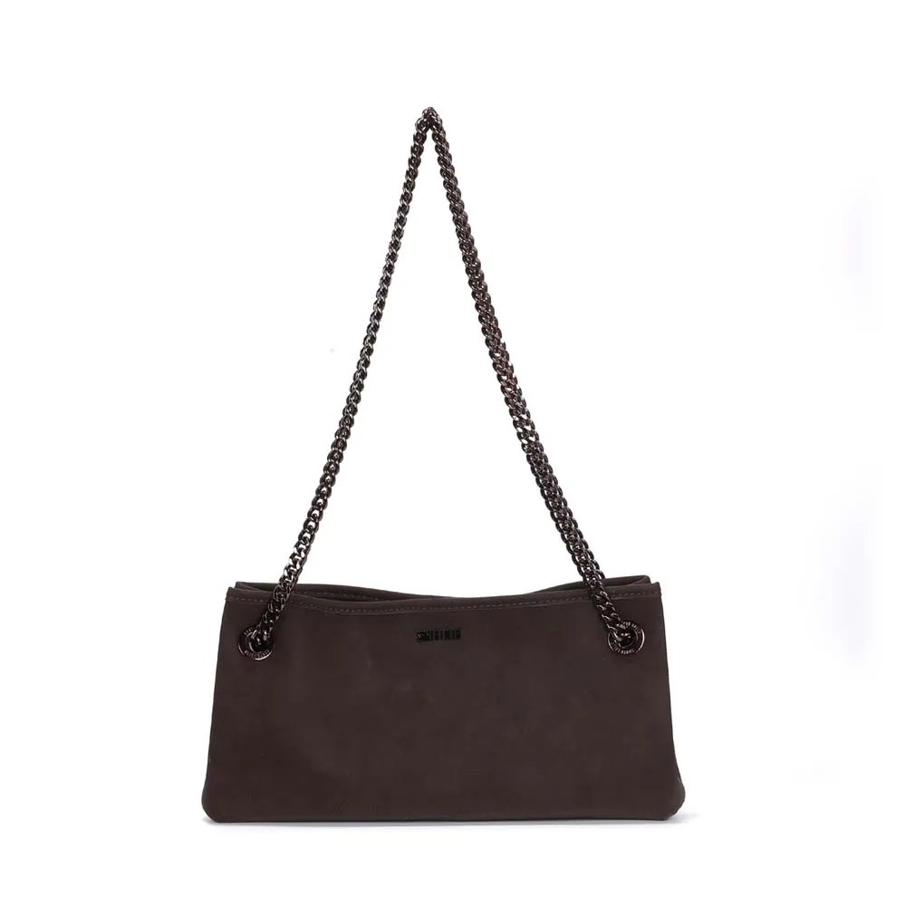 BOLSA NOBUCK SANTA LOLLA MARROM DARK ALÇA DE OMBRO CORRENTE
