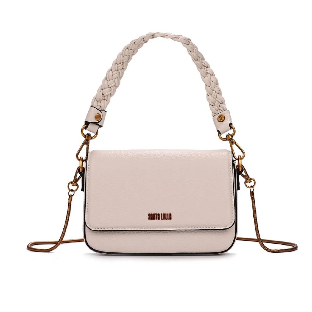 BOLSA SANTA LOLLA BAGUETE FLOATER ALÇA TRANÇA OFF WHITE