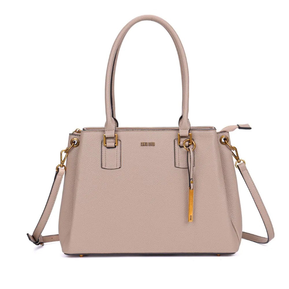 Bolsa estruturada com detalhes dourados, confeccionada em material tecnológico. Este modelo apresenta bolsos laterais com fechamento magnético para praticidade, amplo compartimento interno forrado, com bolsos organizadores, e fechamento superior em zíper. Além disso, oferece versatilidade com uma alça transversal removível e uma alça de ombro, garantindo conforto e estilo em todas as ocasiões.Tamanho da Bolsa
