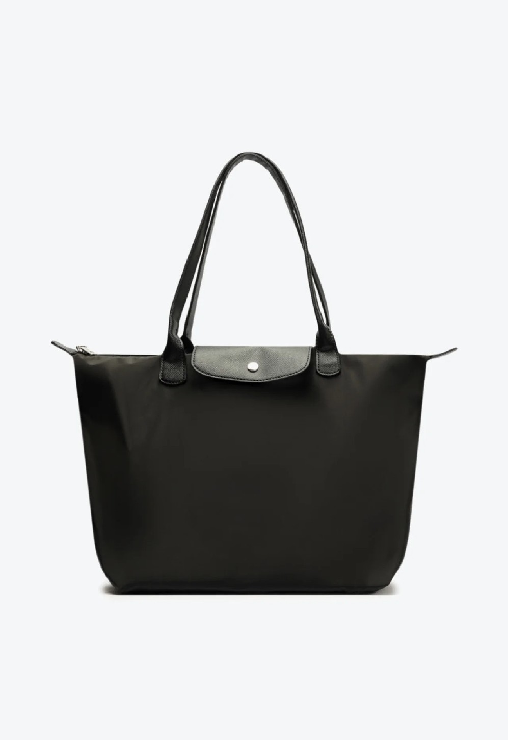 Bolsa shopping grande em nylon, com detalhe em botão, na cor preta. De tamanho grande, possui duas alças de mão em tiras finas e fecho em zíper com puxador em tira. Em tecido de nylon e forrada na parte interna com bolsinho, essa bolsa possui um ótimo compartimento interno. Traz fecho superior em lapela com botão de ímã, com detalhe para aplicação de rebite metálico com assinatura Anacapri. Novidade: esse modelo é dobrável. Uma peça ótima para levar na mala em viagens ou otimizar espaço na hora de guardá-la dobrada. Cor: Preto