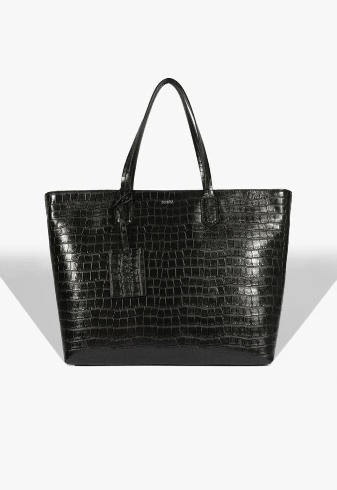 O design sofisticado desta bolsa shopping preta destaca esse modelo na categoria! Glamurosa com seu acabamento em couro croco com leve brilho, ela conta amplo espaço interno para levar tudo que você precisa. Com detalhe da charmosa tag de couro, vai ser aquela bolsa elegante, prática e estilosa para te acompanhar sempre! Comprimento da alça: 19 cm | Largura da alça: 1,5 cm