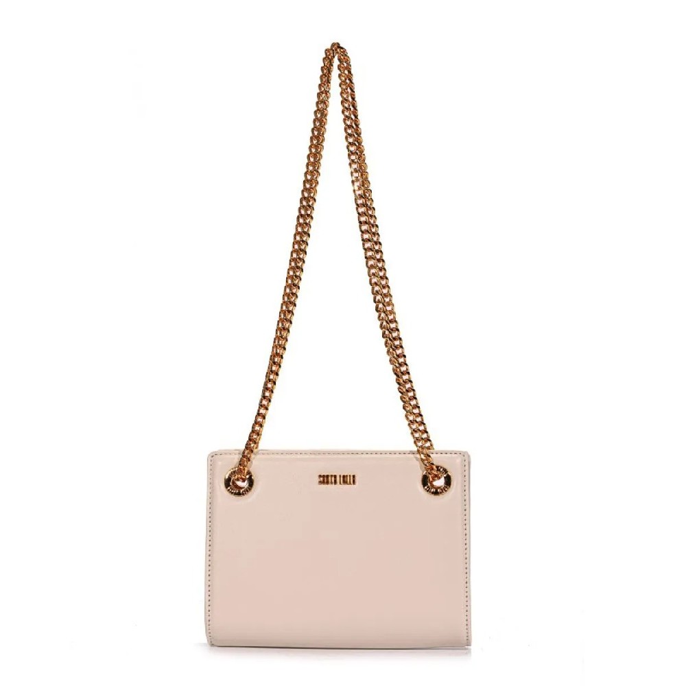 Bolsa confeccionada em material tecnológico soft, oferecendo toque macio e visual elegante. Modelo transversal com estrutura compacta e alça de corrente metálica, que adiciona sofisticação ao design. Possui fechamento por ímã e logo da marca em destaque na parte frontal, agregando identidade à peça. Ideal para compor produções delicadas e estilosas no dia a dia ou em ocasiões especiais.Cor