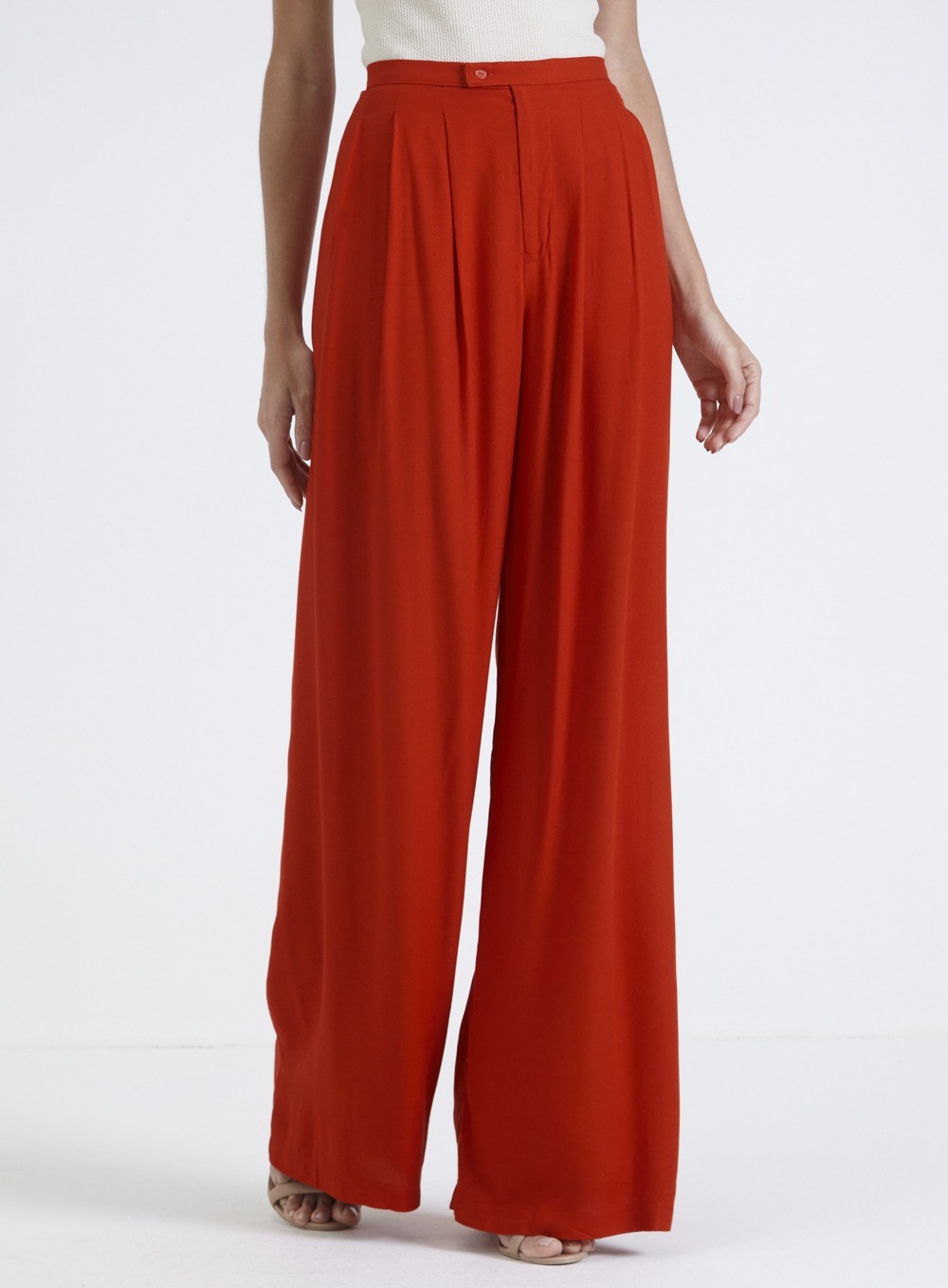 Uma calça ampla com pregas é uma peça de vestuário que possui pernas largas e costuras adicionais na parte da frente, chamadas pregas. As pregas são dobras de tecido que proporcionam volume extra e um visual mais estruturado à calça. Esse estilo de calça pode ser elegante e sofisticado, muitas vezes usado em contextos formais ou de moda. Elas podem ser feitas de uma variedade de materiais, desde tecidos leves e fluidos até tecidos mais pesados e estruturados, dependendo do efeito desejado.