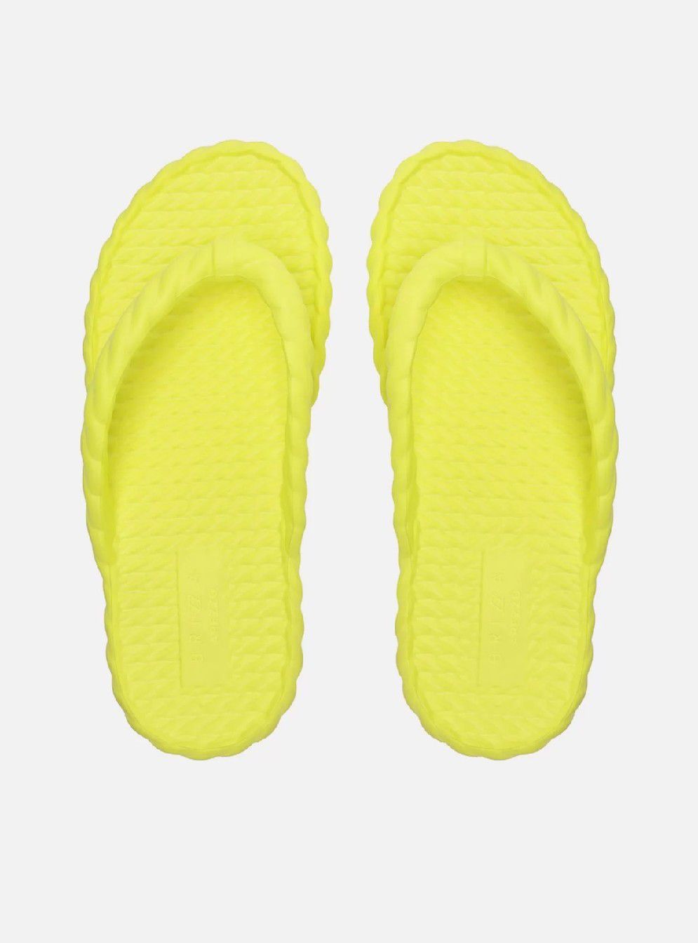 Chinelo de dedo metalizado com efeito holográfico em EVA. O modelo tem sola rasteira flat, solado em relevo que imita tiras de cordão torcido e palmilha texturizada com gravação Brizza + La Sire?ne. De bico redondo, traz tiras dividindo os dedos e também em forma de cordão torcido. Aberto, o chinelo de dedo exibe todo o pé. Charmoso, o chinelo traz relevo inspirado em tiras de cordão com efeito torcido e garante estilo e conforto para suas produções. A opção ideal para quem busca um clássico renovado!