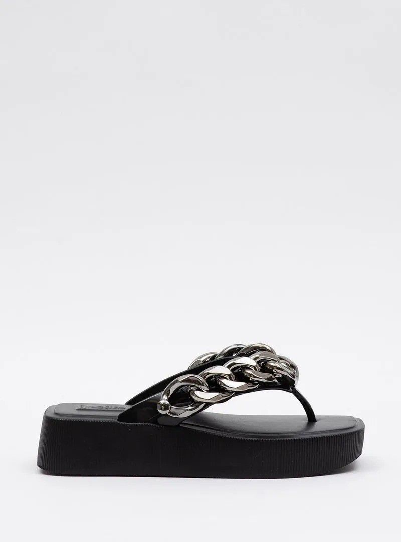 Chinelo de dedo na cor branca com solado flatform de EVA e bico quadrado. Possui aplicação de correntes metalizadas, com tiras grossas em J-Lastic, que separam os dedos. Palmilha da mesma cor com o nome da marca e solado flatform. Deixa dedos, laterais e calcanhar à mostra. Material: EVA + J-Lastic (PVC exclusivo da Petite Jolie) Altura da sola: 4 centímetro #REF:PJ6515