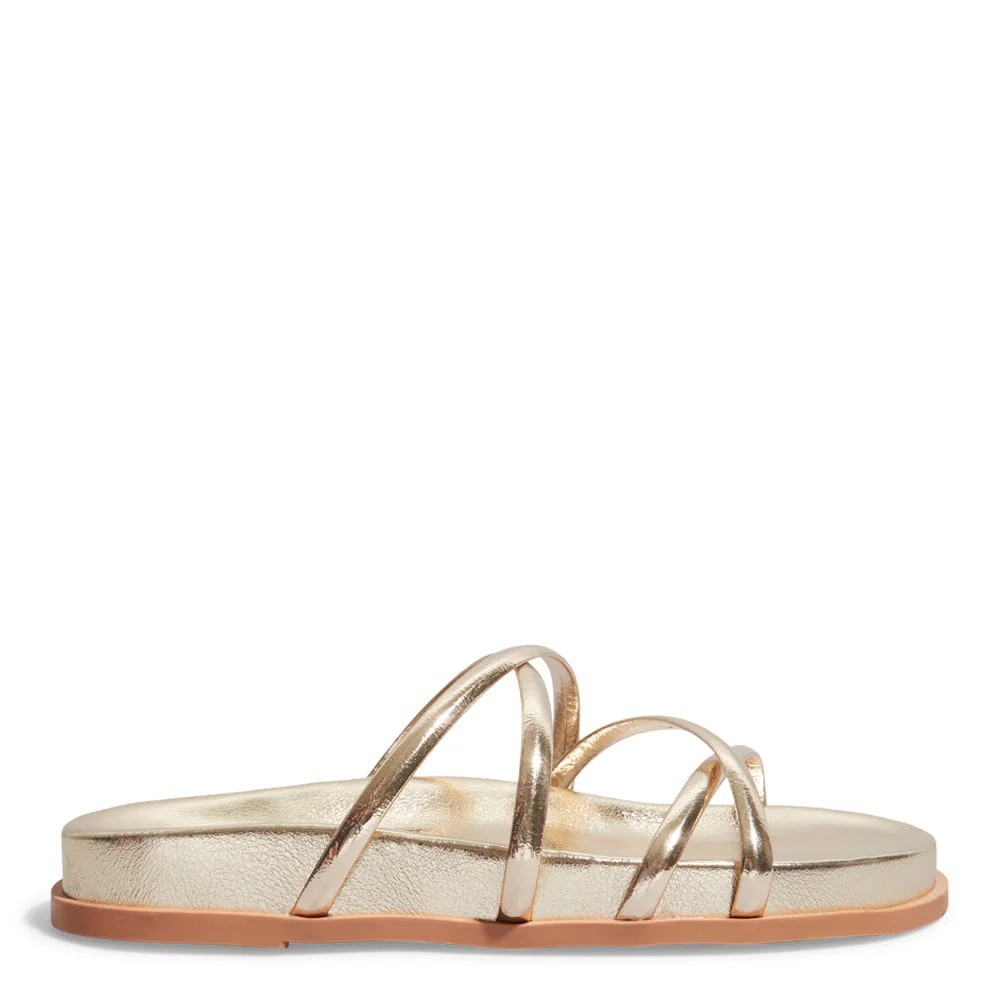 Estilo e conforto em um só modelo! Essa papete dourada traz tiras finas metalizadas que garantem um visual moderno e delicado, perfeito para compor produções sofisticadas nos dias mais quentes. Com solado flat levemente elevado e palmilha acolchoada, ela oferece máximo conforto para o dia a dia, sem abrir mão do charme.