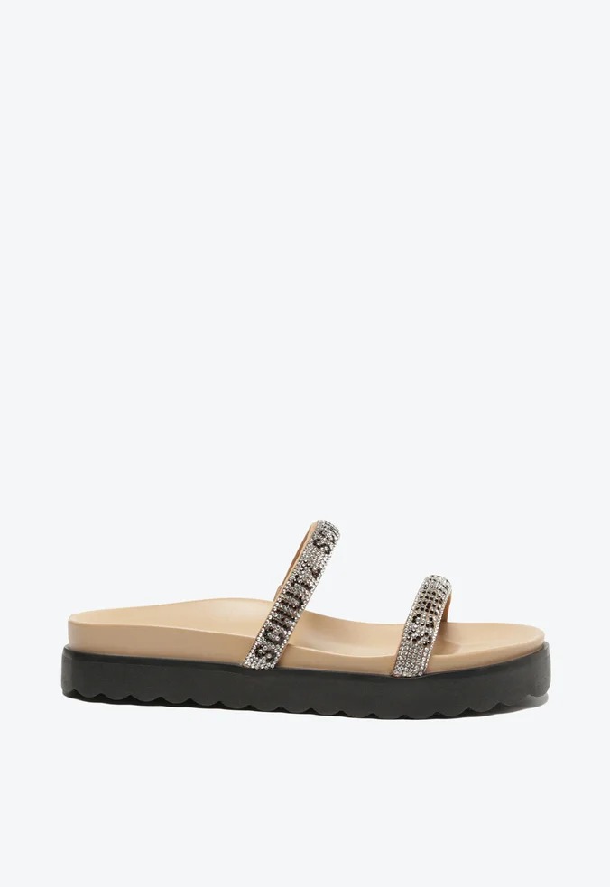 Essa sandália papete traz um efeito glam por conta das suas tiras com um mix de pedrarias, além do logo Schutz. Esse toque de elegância contrasta com o shape estruturado do calçado, resultando nessa aposta cheia de personalidade. Tamanho do salto: 4.3cm REF:# S2073300640002