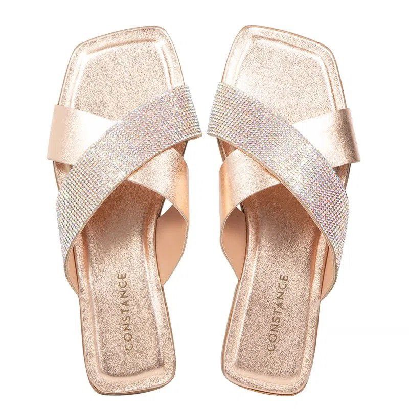 Chinelo Dourado Manta Cristal, moderno, confortável e delicado. É uma ótima opção para dias de sol, com a mesma praticidade de um chinelo porém com mais elegância. #REF:S524CQ724