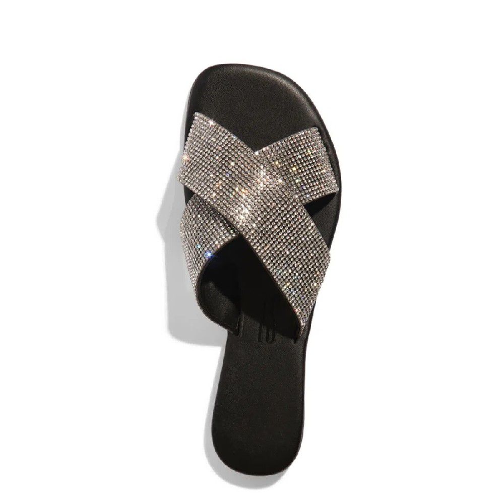 Rasteira cristal com tiras grossas com strass. Modelo de rasteira feminina possui duas tiras com brilho que se cruzam no peito do pé.Os modelos com pedras são perfeitos para programas noturnos e sofisticados, as mais básicas são ótimas para dias de sol, calor, praia, campo e passeios a céu aberto. #REFERENCIA: 068C.3CC3.02DB.0266