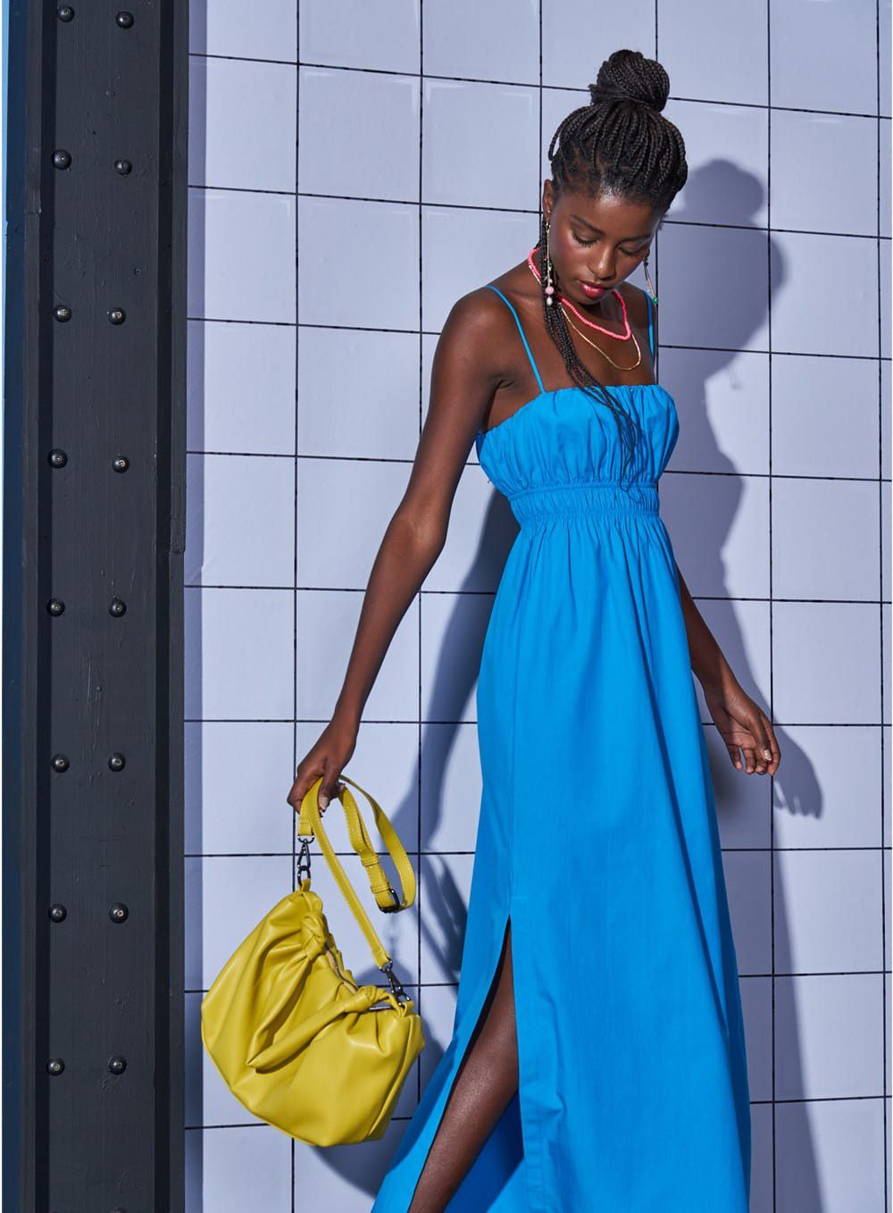 VESTIDO MIDI COLCCI COM FENDA BUSTO FRANZIDO - AZUL