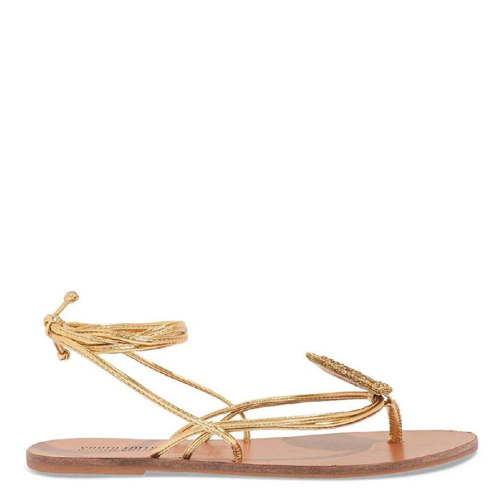 Rasteira confeccionada em Metallic soft, com tiras frontais em um material metalizado que brilha sob a luz, criando um efeito visual impactante. O detalhe em metal com brilhos, acrescenta um toque sofisticado e luxuoso ao calçado, tornando-o perfeito para ocasiões especiais. O fechamento por amarração é uma característica que confere um charme extra à rasteira, permitindo um ajuste personalizado e seguro.Cor Dourado Material Metalizado Código de Referência 03E4.4BF6.0339.0022