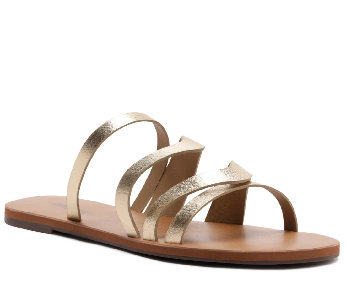 Rasteira flat de multi tiras, na cor dourada. O modelo apresenta cabedal com multi tirinhas: uma sobre os dedos, duas com design de curvas centrais e uma sobre o peito de pé. De biqueira arredondada, traz palmilha marrom e assinatura Anacapri.Material: Couro Cor: Dourado Referência: C3001404770001