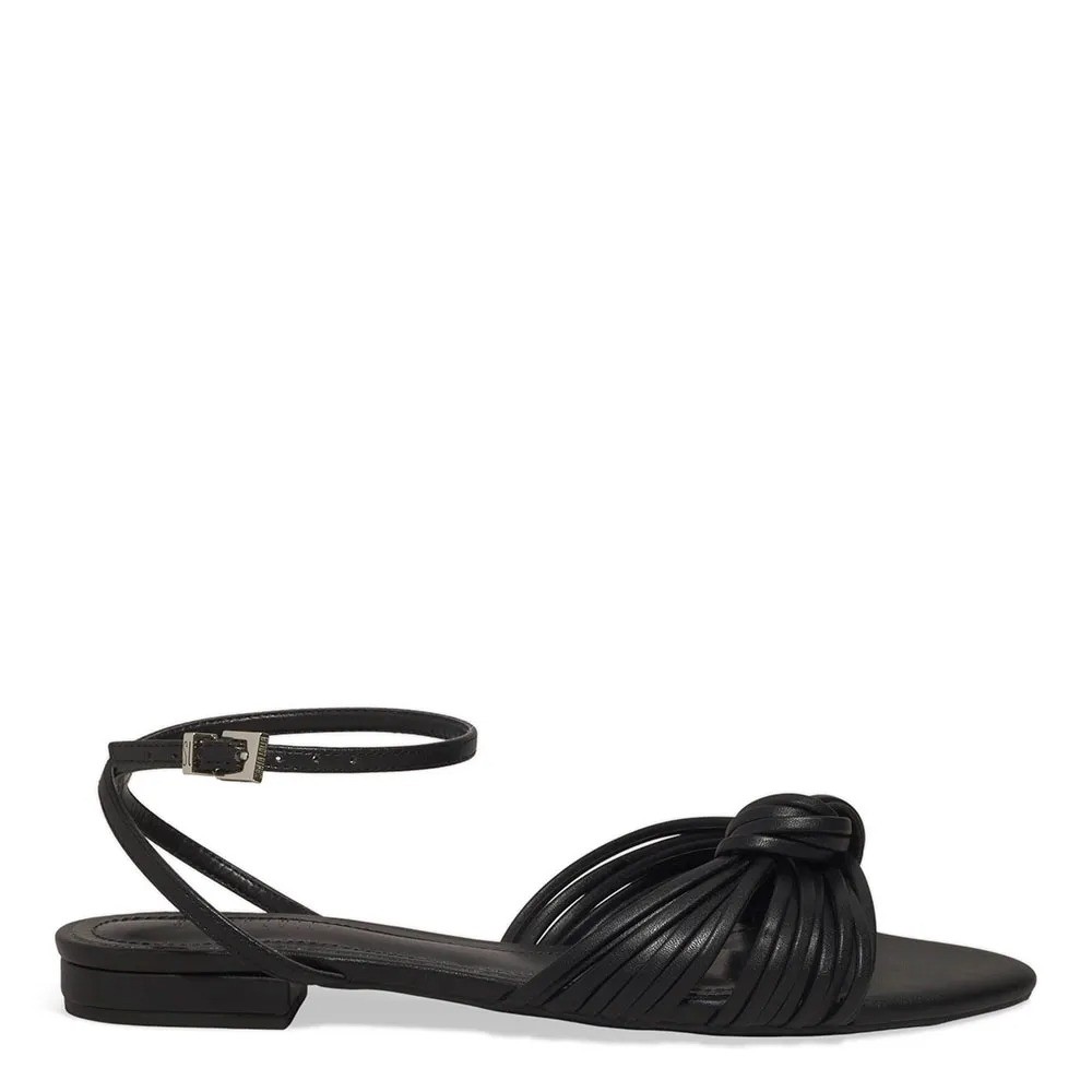 Rasteira confeccionada em material tecnológico napa, com design elegante e moderno. Apresenta cabedal formado por tiras finas entrelaçadas em nó central, que adiciona charme ao visual. Possui bico folha que alonga a silhueta e tira ajustável no tornozelo com fechamento por fivela, garantindo praticidade e segurança no calce. O salto flat proporciona conforto absoluto, tornando o modelo ideal para compor produções versáteis, perfeitas para o dia a dia ou momentos especiais.Material