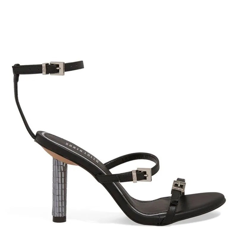 Sandália confeccionada em napa, entregando toque macio e excelente acabamento. O design minimalista apresenta tiras finas no cabedal com detalhes de fivelas metálicas e fechamento ajustável no tornozelo, garantindo segurança e elegância. O destaque fica por conta do salto cilíndrico com acabamento espelhado, que adiciona personalidade ao visual. Bico levemente quadrado para uma pegada contemporânea. Ideal para compor produções sofisticadas em festas, eventos e ocasiões especiais.Material