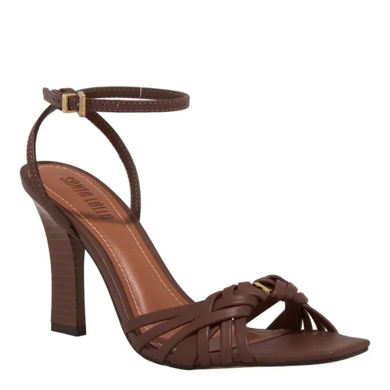 SANDÁLIA SANTA LOLLA NAPA SOFT TIRAS ENTRELAÇADAS SALTO ALTO BLOCO MARROM