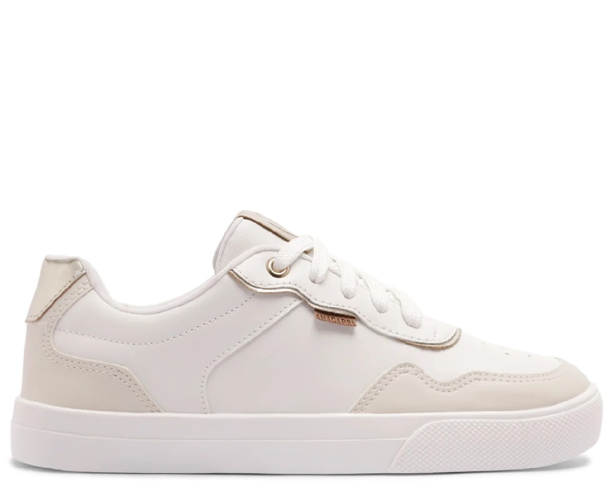 Tênis Anacapri com detalhe de recortes, em branco e rosa. O modelo de amarração por atacadores possui solado baixo emborrachado branco e texturizado. Traz aplicação de peça traseira em napa dourada e peças em camurça rosa, na biqueira e calcanhar. Possui detalhe em costura pesponto dupla nos contornos da biqueira, laterais e efeito em ondas na lingueta. Apresenta cabedal com design imponente de recortes, perfuros e aplicação de tag marrom Anacapri na lateral do tênis. Traz palmilha confortável e etiqueta emborrachada Anacapri aplicada na lingueta.Material Tecnológico