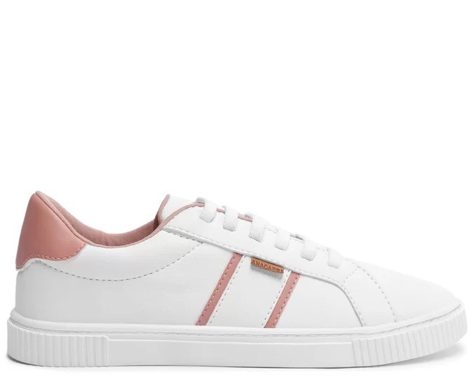 Tênis branco com detalhe rosa claro no tornozelo e em duas listrinhas nas laterais. Solado branco, atacadores em elástico branco e tag marrom lateral com o nome da marca. Material: Material Tecnológico Cor: Branco #REF:C3034100020004