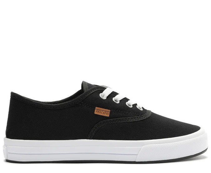 Tênis Anacapri de sola texturizada Livia com listra preto. O tênis feminino de amarração vem para a temporada de inverno com cabedal em tecido de lona. Com atacadores brancos e ilhoses em metal, o modelo apresenta solado branco emborrachado e texturizado na biqueira, com detalhe em listra preta na lateral. Com aplicação de tag marrom Anacapri lateral. Contorno em fita e detalhe na parte frontal. Material: Tecido Cor: Preto Referência: C3060900020006